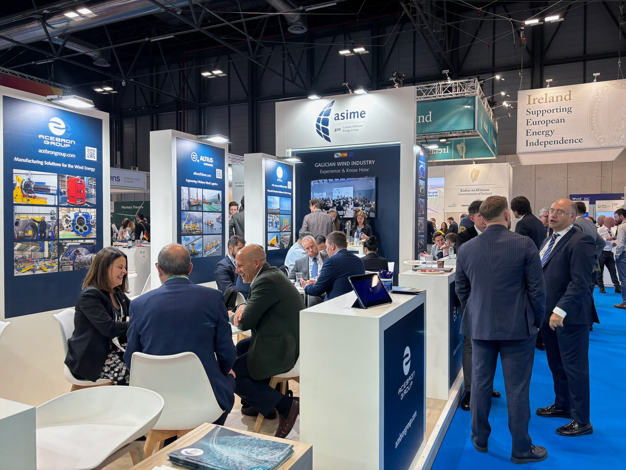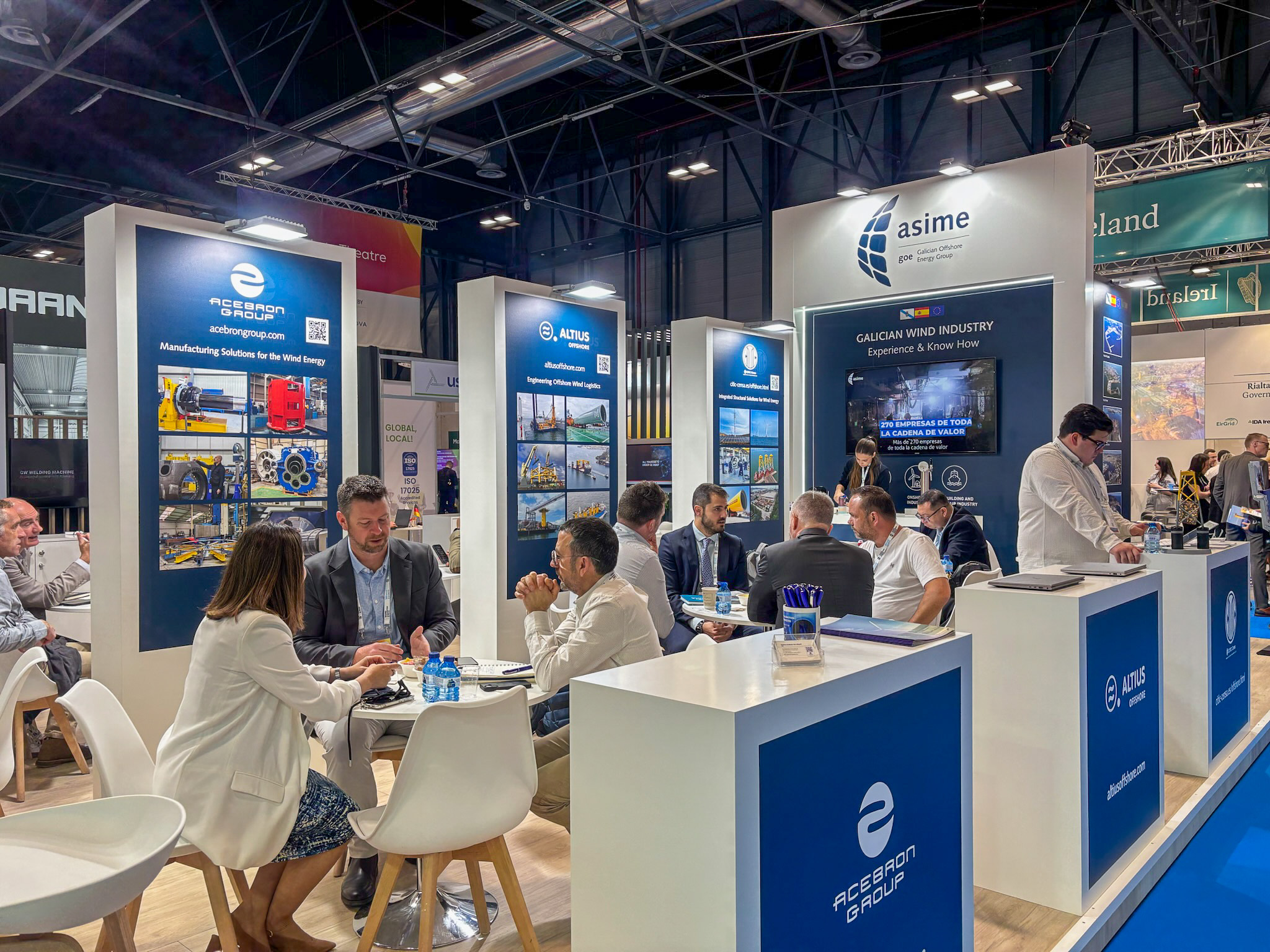 En el stand del GOE-Asime recibieron a clústeres y empresas de Bélgica, Francia, Polonia, Portugal, Irlanda del Norte, Emiratos Árabes Unidos o Italia, con espacial foco en los países que están instalando en el Mar del Norte los parques eólicos marinos de más alta tecnología a nivel mundial: “Muchos de esos parques cuentan con tecnología y componentes gallegos. De hecho, de los 5 parques eólicos flotantes que hay implantados en Europa, 3 cuentan con tecnología galega”.